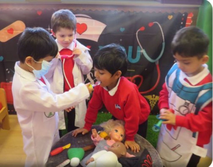 Our Nursery pupils had a wonderful time exploring the world of Doctors and Nurses in their role play area. The children enjoyed using medical props, taking turns as patients and practitioners, acting out real-life scenarios, including CPR. This imaginative play not only sparked their curiosity but also helped to enhance their communication skills, develop empathy, and build confidence as they worked together and explored new vocabulary. It has been lovely to see their teamwork throughout this learning experience!